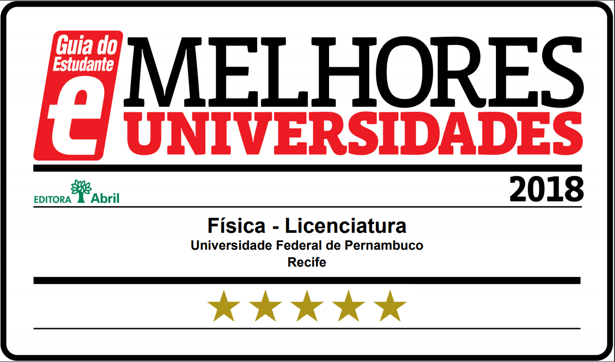 LICENCIATURA EM FÍSICA - DF - CCEN - UFPE - 05 ESTRELAS NO GUIA ESTUDANTE DA ABRIL (LINK)