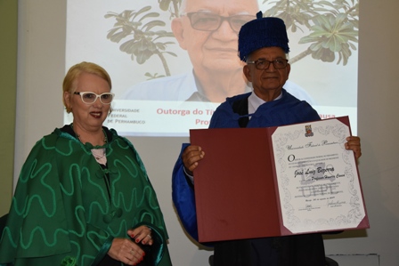 O professor José Luiz Bezerra é o novo Professor Honoris Causa da Universidade Federal de Pernambuco (UFPE). A sessão solene de outorga do título foi realizada, na manhã de hoje (30), no Auditório Jorge Lobo, no Centro de Ciências da Saúde (CCS), no Campus Recife. O título foi concedido ao docente em reconhecimento à grande contribuição dada por ele para o avanço da Micologia e da Fitopatologia.